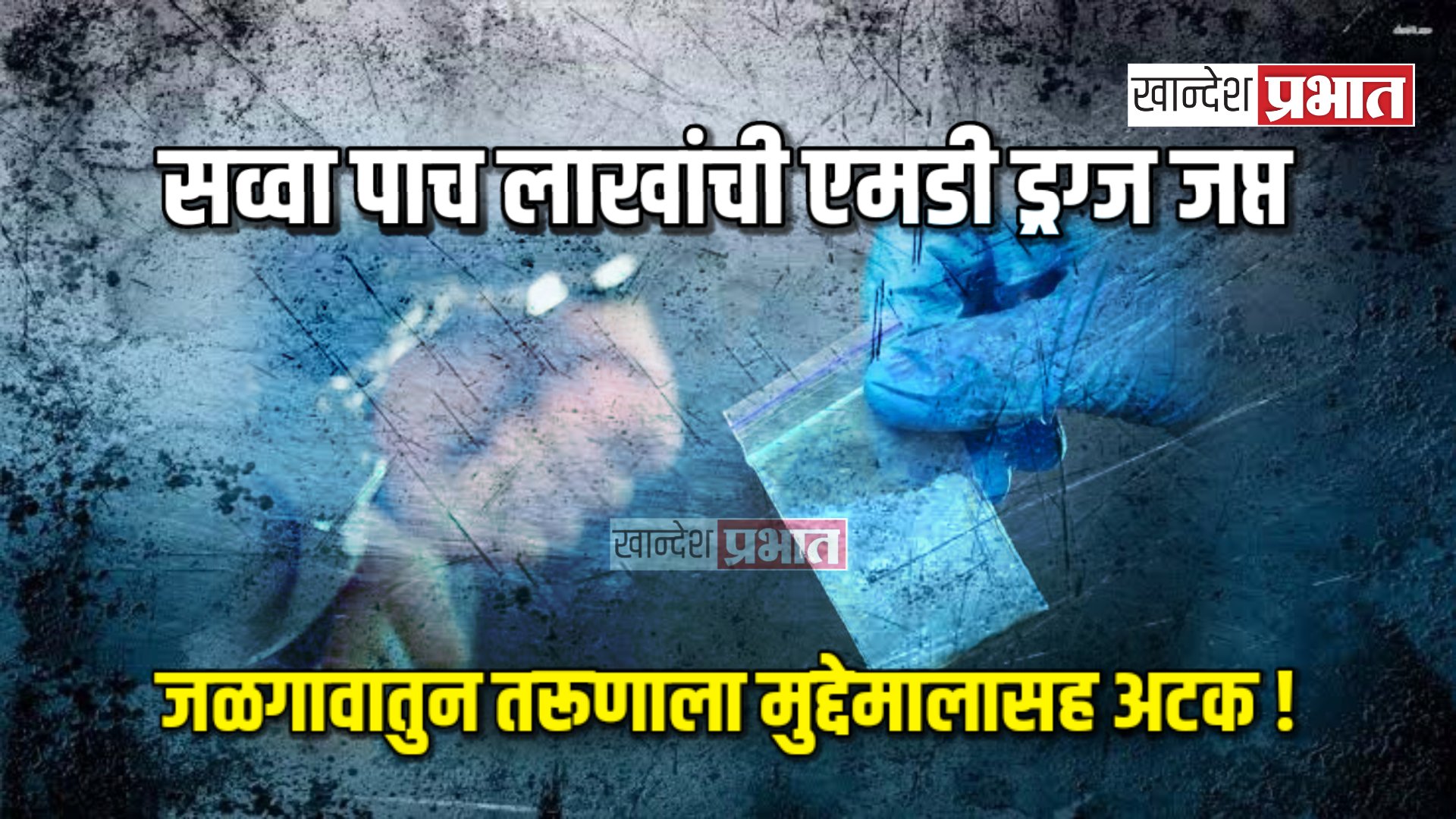 जळगाव शहर पोलिस ठाण्याचे पोलीस कर्मचारी आनंद निकुंभ आणि प्रफुल्ल धांडे गस्तीवर असताना त्यांना गुप्त माहिती मिळाली की, शाहू नगरातील एका घरात एमडी ड्रग्जचा साठा करून विक्री केली जात आहे. या माहितीच्या आधारे पोलिसांनी शनिवारी, २२ फेब्रुवारी रोजी रात्री ९ वाजता जळगाव शहर पोलिसांनी शाहू नगर येथे छापा टाकून सर्फराज जावेद भिस्ती (वय-२३, रा. शाहू नगर, जळगाव) याच्या घरातून ५ लाख ३४ हजार रुपये किंमतीचा ५३.४० ग्रॅम एमडी ड्रग्ज जप्त केला. पोलिसांनी त्याच्या घरातून दोन पुड्या हस्तगत केल्या असून, सर्फराज जावेद भिस्ती याला अटक करण्यात आली आहे. याप्रकरणी जळगाव शहर पोलिस ठाण्यात एनडीपीएस कायद्याअंतर्गत गुन्हा दाखल करण्यात आला आहे.