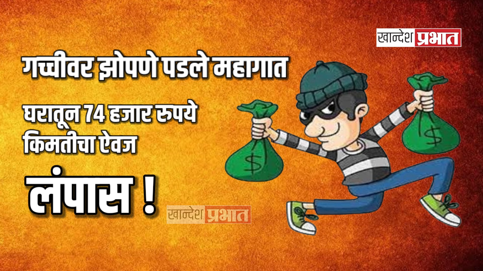 अज्ञात चोरट्याने किचनमधील दरवाजाची कडी तोडून आत प्रवेश केला व बेडरूममधील लोखंडी कपाटात ठेवलेला ७४ हजार रुपये किमतीचा ऐवज चोरून नेल्याचे स्पष्ट झाले. हा प्रकार दि. २७ रोजी रात्री ११:३० ते २८ रोजी मध्यरात्री २ वाजेच्या सुमारास घडला. याप्रकरणी उद्धव शिंगाडे यांच्या फिर्यादीवरून अज्ञात चोरट्याच्या विरोधात चाळीसगाव ग्रामीण पोलिस स्टेशनला गुन्हा दाखल करण्यात आला आहे. तपास हवालदार राजेश रावते हे करीत आहेत.