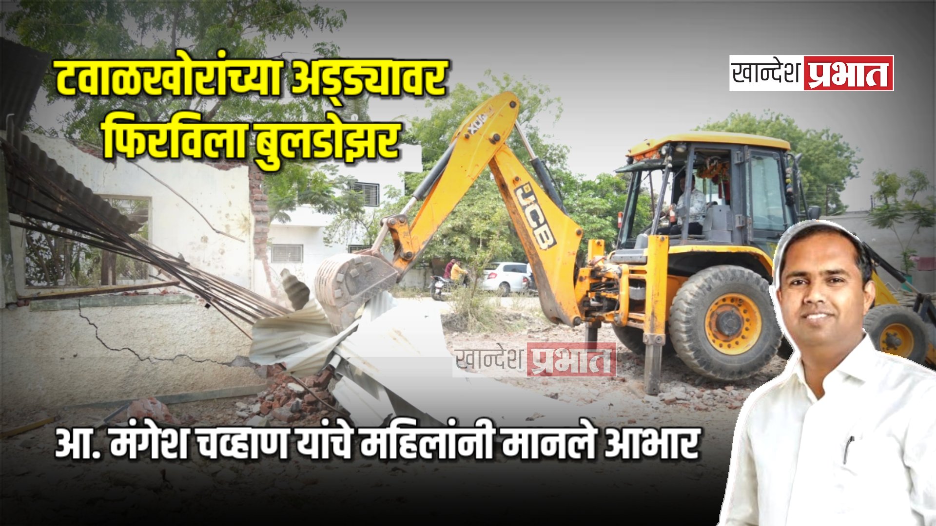 चाळीसगाव, (प्रतिनिधी) : चाळीसगावात टवाळखोरांच्या अड्ड्यावर बुलडोझर चालवून तो नष्ट करण्यात आला. आ. मंगेश चव्हाण यांच्या उपस्थितीत न.पा.ची धडक कारवाई कौतुकाचा विषय ठरली. याबाबत परिसरातील महिला व मुलींनी आ. चव्हाण यांचा सत्कार केला.