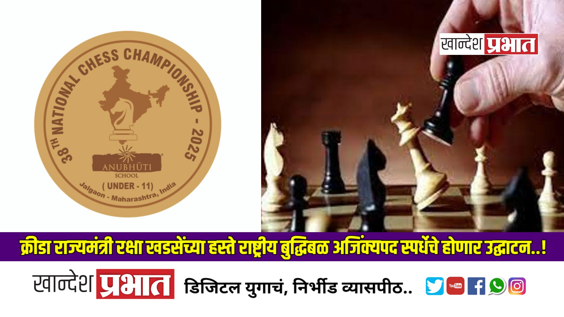 ३८ व्या राष्ट्रीय बुद्धिबळ अजिंक्यपद स्पर्धेचे आयोजन २ ते ८ ऑगस्ट २०२५ दरम्यान जळगाव येथील जैन हिल्स परिसरातील अनुभूती मंडपम् येथे होईल. जळगाव शहरात पहिल्यांदाच भव्य स्वरूपात होणाऱ्या बुद्धिबळ स्पर्धेत ५५० च्यावर खेळाडूंनी सहभाग घेतला आहे. विविध राज्यांतील फिडे मानांकन प्राप्त ४०० खेळाडूंचा समावेश यात समावेश आहे. त्यात प्रथम मानांकित पुण्याचा अद्विक अग्रवाल (२२५१), मुलींमध्ये केरळची देवी बीजेस (१८६९) यांच्यासह अनेक खेळाडू हे आशियाई व जागतिक स्पर्धांमध्ये सहभाग घेतलेले अनेक खेळाडू यात आहे. या स्पर्धेत छत्रपती संभाजीनगर येथील वल्लभ अमोल कुलकर्णी (वय ५ वर्ष) या चिमुकल्याने सहभागी झाला आहे. त्याचा खेळ स्पर्धेचे आकर्षण ठरु शकतो. यात भारतीय वंशाच्या काही विदेशी खेळाडूसुद्धा बुद्धिबळाच्या पटावर आपल्या चाली खेळणार आहेत.