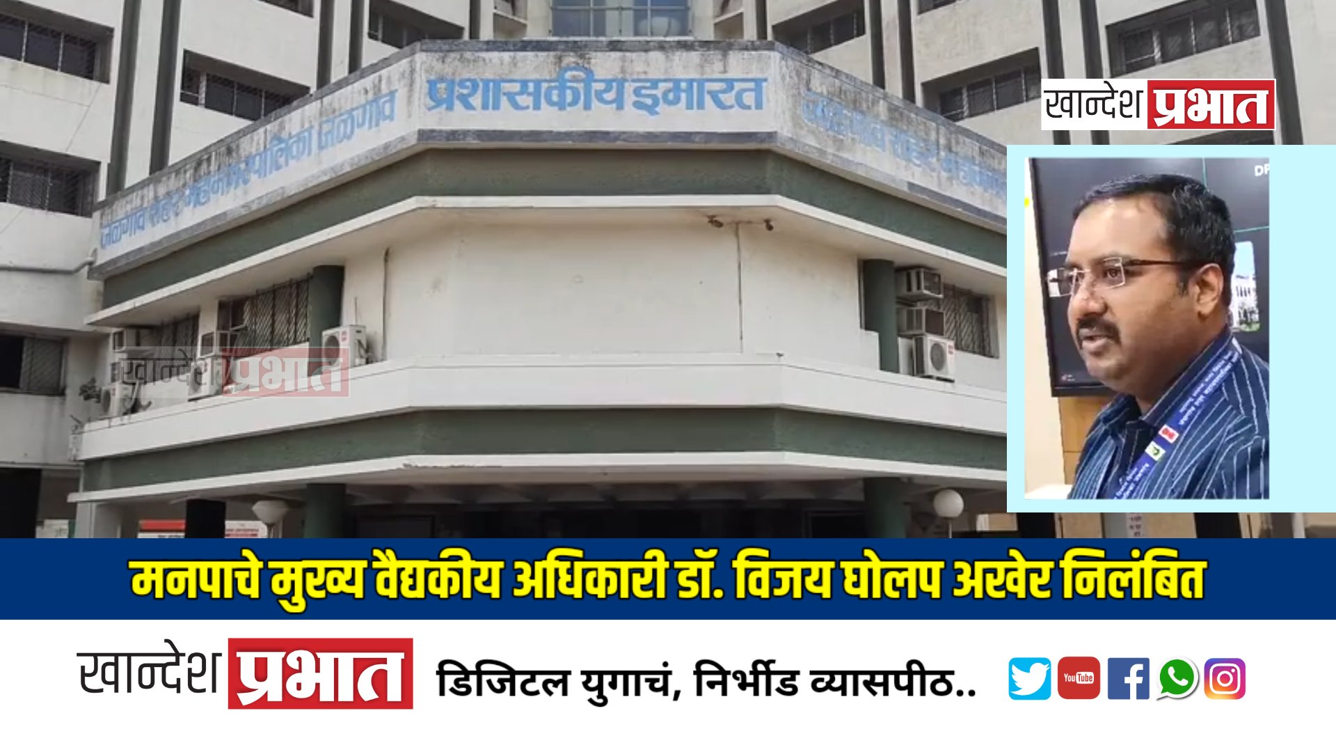 जळगाव, (प्रतिनिधी) : महापालिकेचे मुख्य वैद्यकीय अधिकारी डॉ. विजय घोलप यांना अखेर निलंबित करण्यात आले आहे. जन्ममृत्यू विभागात कंत्राटी पद्धतीने नेमणूक मिळालेल्या एका महिला कर्मचाऱ्याऐवजी तिचा पती कामावर येत असल्याचे उघडकीस आल्यानंतर आयुक्त ज्ञानेश्वर ढेरे यांनी त्यांच्यावर निलंबनाची कारवाई केली आहे.