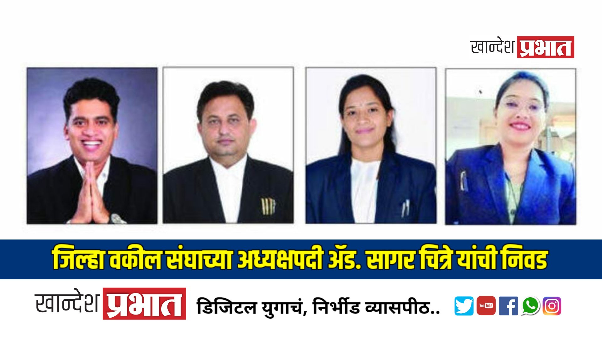 जळगाव, (प्रतिनिधी) : जिल्हा वकील संघाच्या निवडणुकीमध्ये यंदा मोठी चुरस दिसून आली. या निवडणुकीत ॲड. सागर चित्रे यांनी अध्यक्षपदाचा विजय मिळवला आहे. त्यांनी प्रतिस्पर्धी उमेदवार ॲड. संजय राणे यांचा १०१ मतांनी पराभव केला. अध्यक्षपदासोबतच इतर पदांवरही नवीन पदाधिकारी विराजमान झाले आहेत. उपाध्यक्षपदी ॲड. स्मिता झाल्टे, सचिवपदी ॲड. वीरेंद्र पाटील, सहसचिवपदी ॲड. लीना म्हस्के आणि कोषाध्यक्षपदी ॲड. प्रवीण चित्ते यांची निवड झाली आहे.