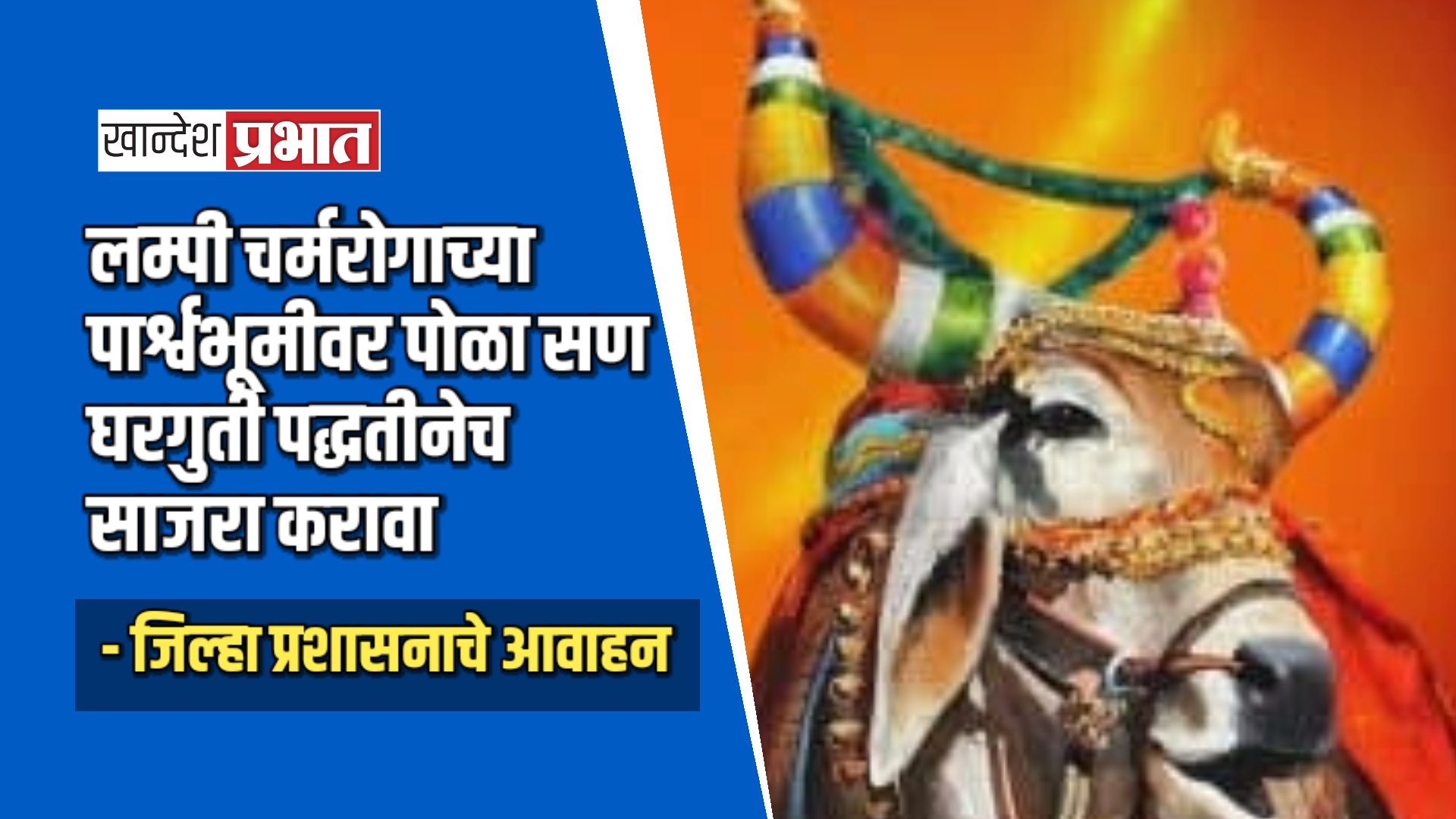 जळगाव, (जिमाका) : यंदाचा पोळा सण लम्पी चर्मरोगाच्या पार्श्वभूमीवर घरगुती पद्धतीनेच साजरा करण्याचे जिल्हा प्रशासनाने आवाहन केले आहे. लम्पीचा प्रादुर्भाव वाढू नये यासाठी प्रतिबंधात्मक उपाय म्हणून नागरिकांनी या बाबीचे गांभीर्य ओळखून आपापल्या घरीच बैलपूजन करावे, असे आवाहन जिल्हाधिकारी आयुष प्रसाद यांनी केले आहे.