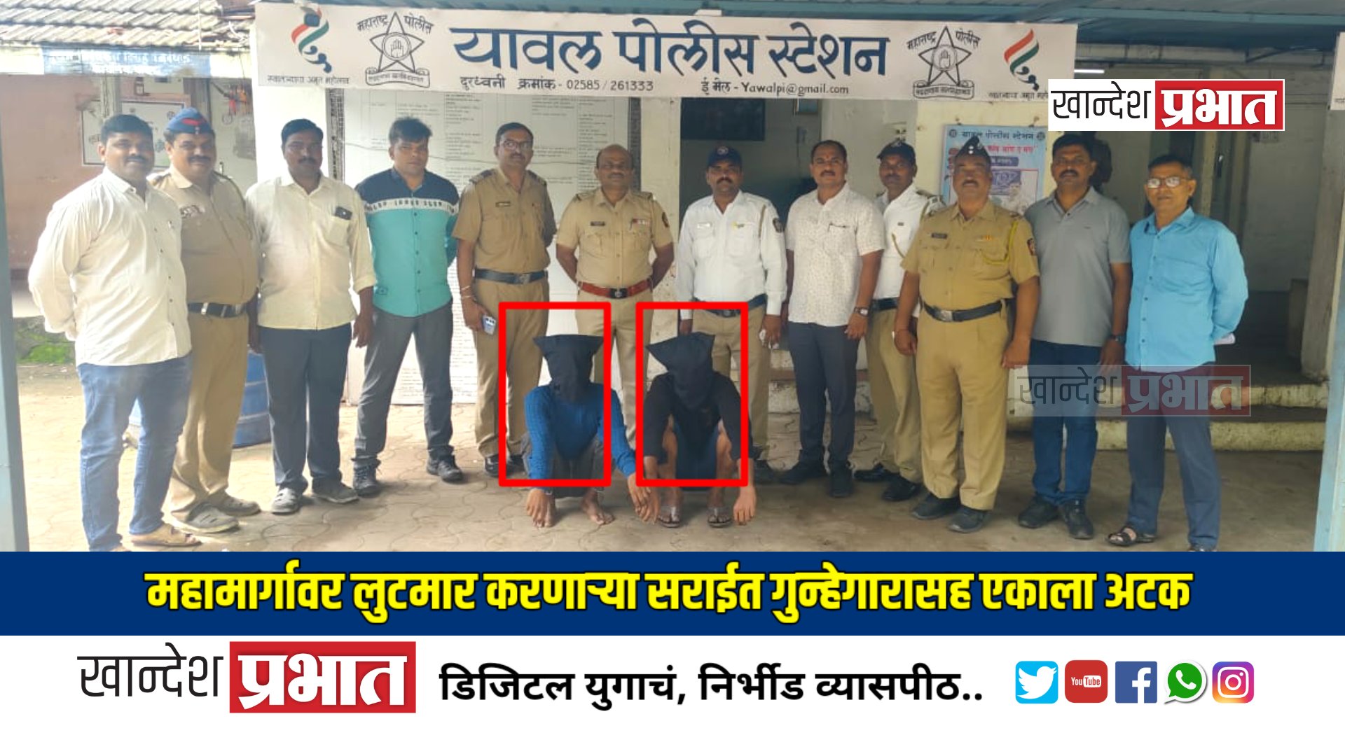 यावल, (प्रतिनिधी) : रात्रीच्या वेळी महामार्गावर चालकांना अडवून लुटमार करणाऱ्या एका सराईत गुन्हेगारासह त्याच्या साथीदाराला यावल पोलिसांनी अटक केली आहे. आरोपींकडून लुटलेली ५ हजार रुपयांची रक्कमही हस्तगत करण्यात आली आहे.