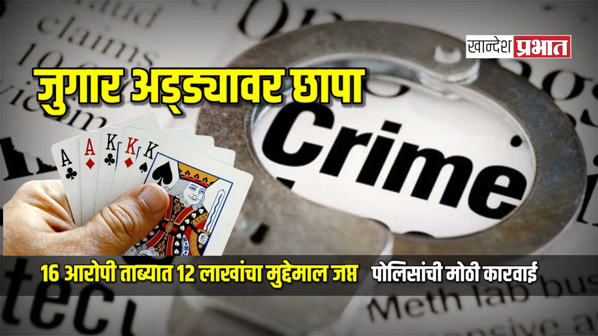 जळगाव, (प्रतिनिधी) : जळगाव स्थानिक गुन्हे शाखेने पाळधी येथे सुरू असलेल्या एका मोठ्या जुगार अड्ड्यावर यशस्वी छापा टाकत १६ आरोपींना रंगेहाथ अटक केली आहे. या कारवाईत पोलिसांनी एकूण १२ लाख २४ हजार २६० रुपयांचा मुद्देमाल जप्त केला आहे, ज्यात रोख रक्कम आणि महागड्या मोबाईल फोनचा समावेश आहे.