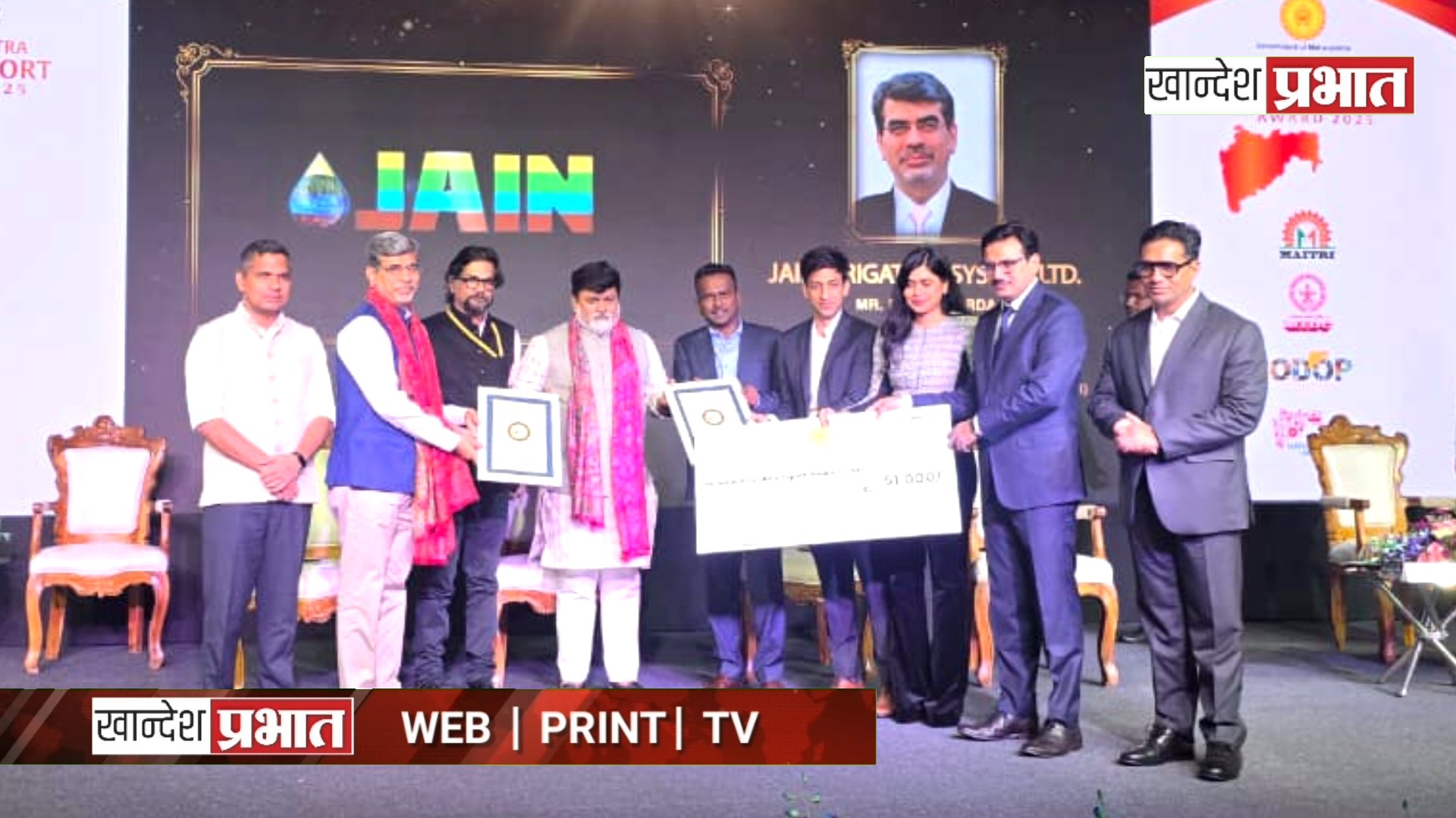 जैन इरिगेशनच्या शिरपेचात मानाचा तुरा; ‘राज्य निर्यात सुवर्ण पुरस्कारा’ने सन्मानित