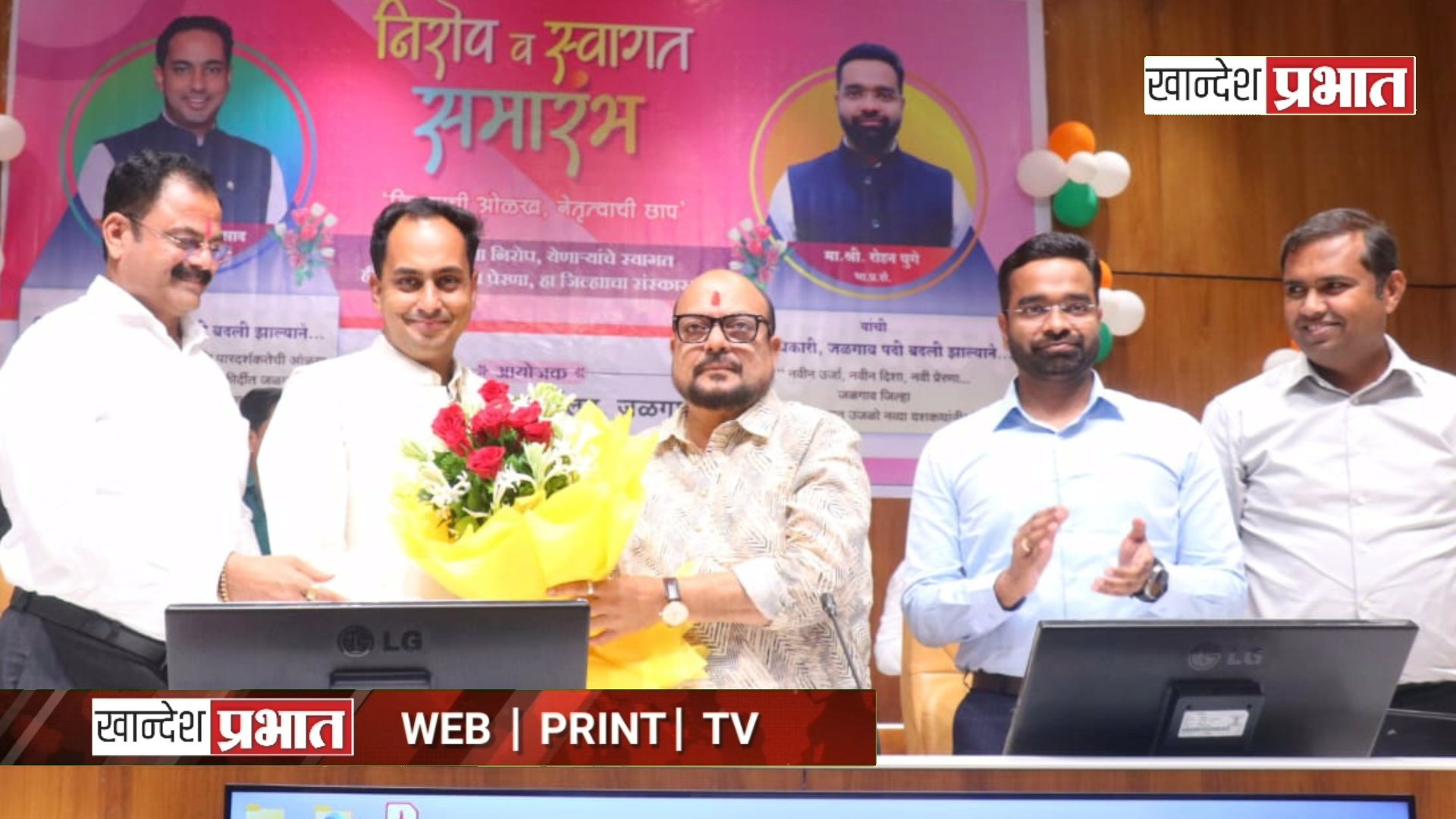 जळगाव, (जिमाका वृत्तसेवा) : तत्कालीन जिल्हाधिकारी आयुष प्रसाद हे ‘सर्वसामान्यांची कामे करणारे आणि माणसांमध्ये मिसळणारे’ अधिकारी आहेत, अशा शब्दांत पालकमंत्री गुलाबराव पाटील यांनी त्यांच्या कामाचे कौतुक केले. आयुष प्रसाद यांच्या निरोप समारंभ आणि नूतन जिल्हाधिकारी रोहन घुगे यांच्या स्वागत समारंभात ते बोलत होते.