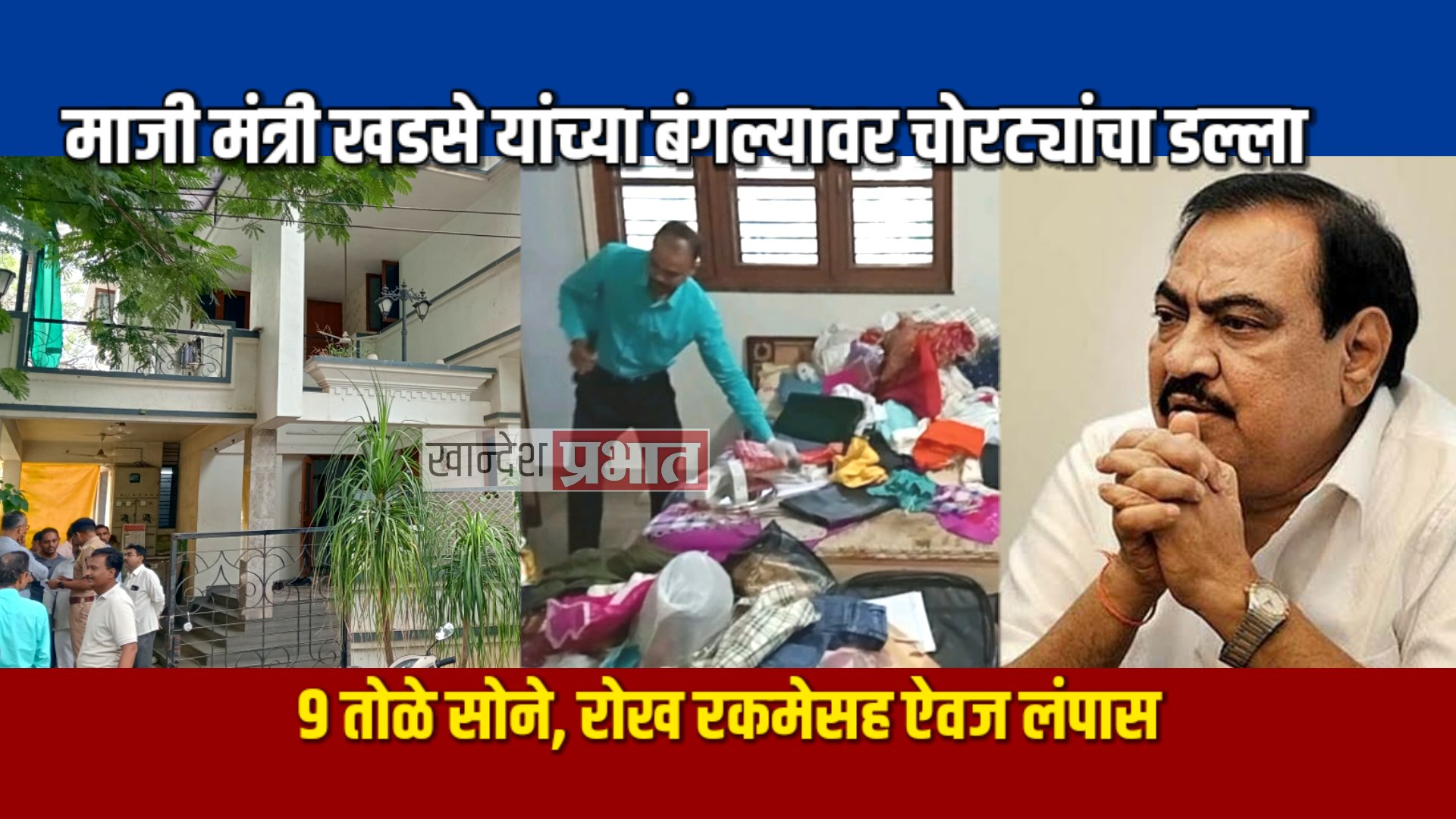 जळगाव, (प्रतिनिधी) : शहरातील शिवराम नगरमध्ये असलेल्या आमदार एकनाथराव खडसे यांच्या बंगल्यात मध्यरात्री चोरट्यांनी चोरी केली आहे. दिवाळीनिमित्त आमदार खडसे हे त्यांच्या मूळ गावी कोथळी येथे असताना ही घटना घडली. प्राथमिक माहितीनुसार, सुमारे ८ ते ९ तोळे सोने आणि ३५ हजार रुपये रोख रक्कम चोरीला गेली असल्याचा प्रकार समोर आला आहे.
