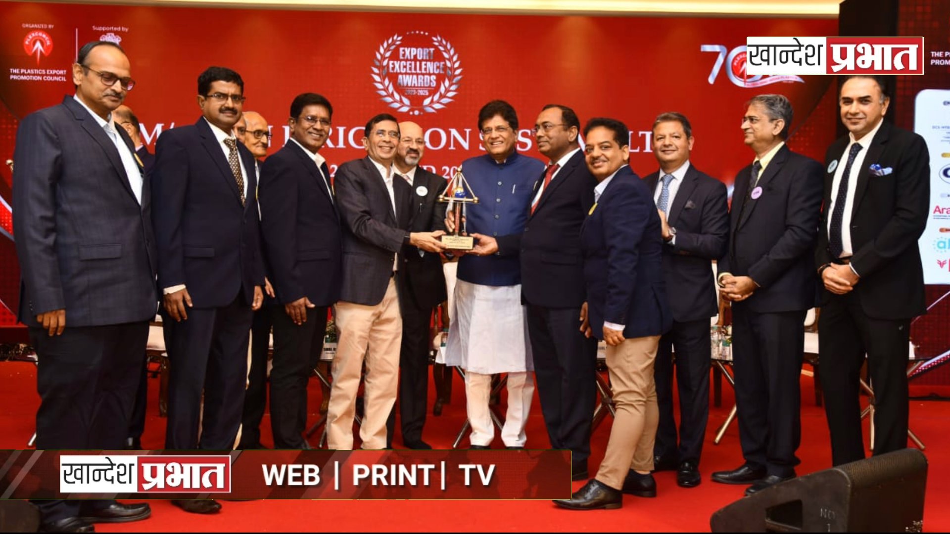 PLEXCONCIL च्या ७० व्या वर्धापन दिनानिमित्त आयोजित या सोहळ्यात मंत्री पीयूष गोयल यांनी प्लास्टिक क्षेत्राच्या शाश्वत विकासातून अर्थव्यवस्थेला बळ देण्याच्या भूमिकेचे कौतुक केले. १९९१ पासून जैन इरिगेशनला दरवर्षी या पुरस्काराने सन्मानित केले जात आहे.