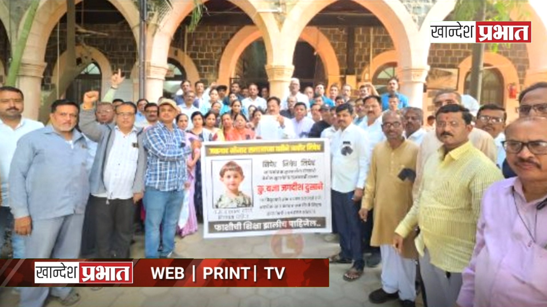 जळगाव, (प्रतिनिधी) : नाशिक जिल्ह्यातील मालेगाव तालुक्यातील डोंगराळे परिसरात ४ वर्षांच्या निरागस चिमुरडीवर झालेल्या अमानुष अत्याचार आणि निघृण खून प्रकरणी संपूर्ण राज्यात संतापाची तीव्र लाट उसळली आहे. या भयावह घटनेमुळे सुवर्णकार समाजासह सर्वच समाजघटकांमध्ये तीव्र अस्वस्थता असून, आरोपीला कठोरात कठोर शिक्षा व्हावी यासाठी एकमुखी मागणी होत आहे.
