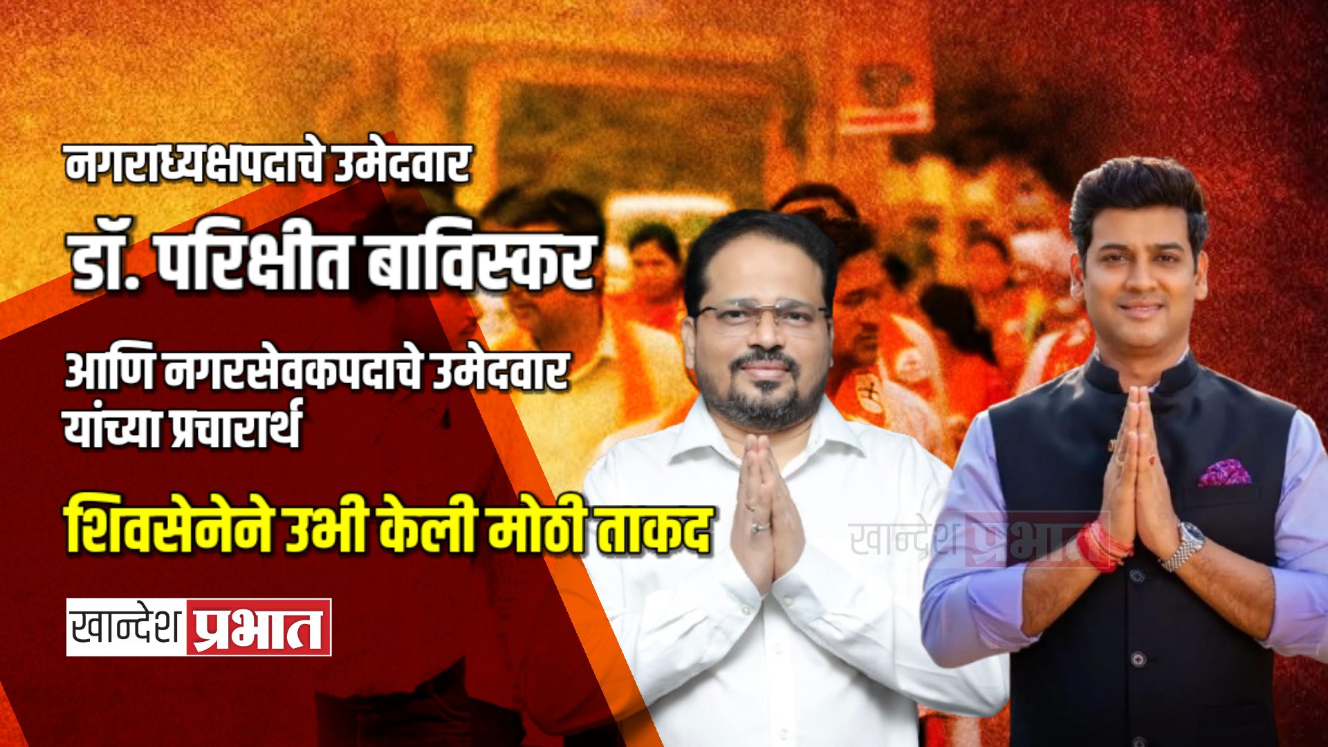 अमळनेर, (प्रतिनिधी) : अमळनेर नगरपरिषद सार्वत्रिक निवडणुकीच्या पार्श्वभूमीवर राजकीय वातावरण चांगलेच तापले आहे. या निवडणुकीत रंग भरण्यासाठी आता विविध पक्षांच्या स्टार प्रचारकांच्या जाहीर सभांना सुरुवात झाली आहे. शिवसेनेचे लोकनियुक्त नगराध्यक्षपदाचे उमेदवार डॉ. परिक्षीत बाविस्कर आणि नगरसेवकपदाचे उमेदवार यांच्या प्रचारार्थ शिवसेनेने मोठी ताकद उभी केली आहे.