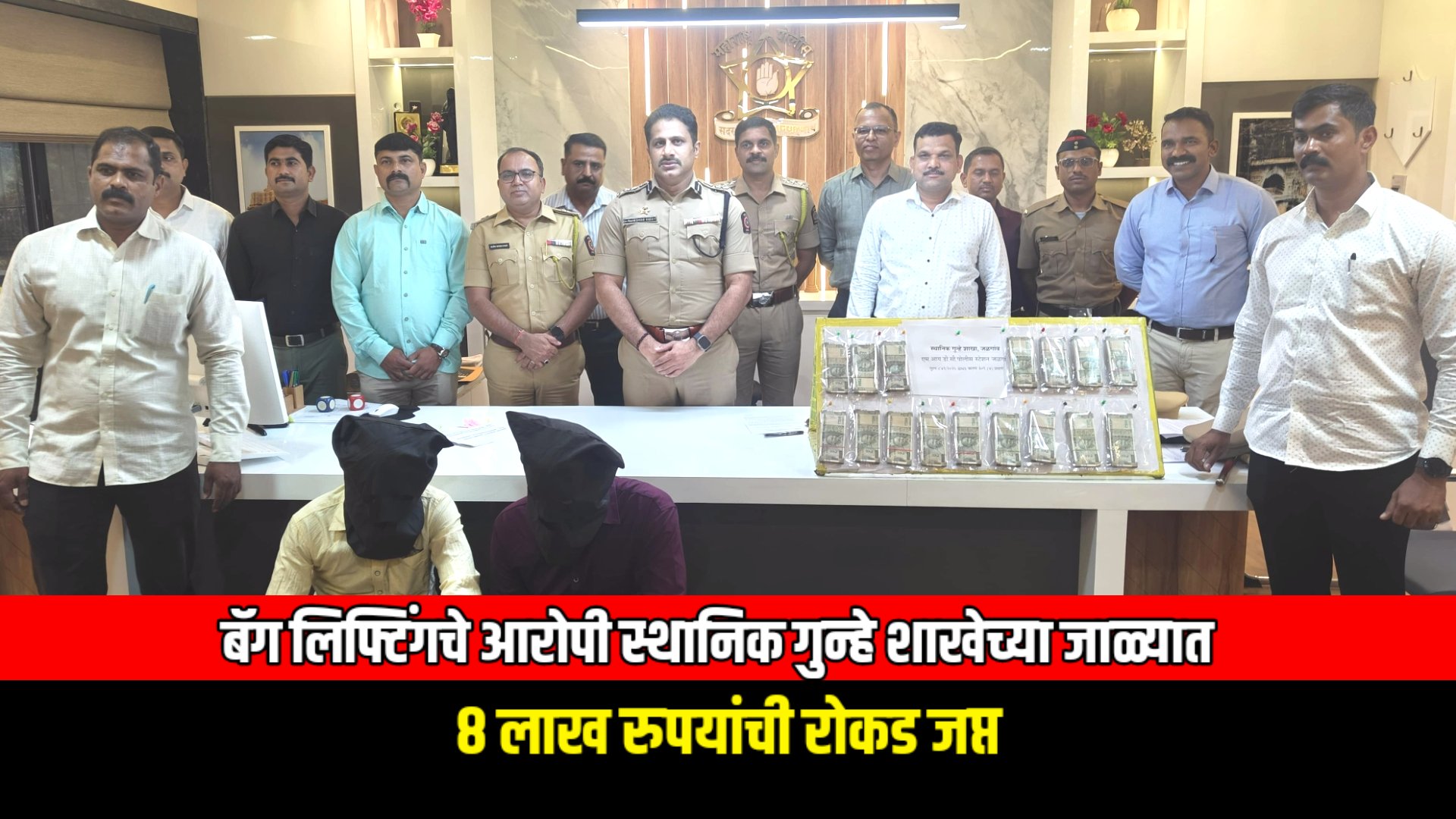जळगाव, (प्रतिनिधी) : येथील एमआयडीसी पोलीस स्टेशन हद्दीत झालेल्या बॅग लिफ्टिंगच्या गुन्ह्याचा स्थानिक गुन्हे शाखेने छडा लावला असून, ८ लाख रुपये रोख रक्कम हस्तगत केली आहे. दि.१५ नोव्हेंबर रोजी विलास मधुकर जाधव (वय ६७) यांनी दिलेल्या फिर्यादीवरून एमआयडीसी पोलीस स्टेशनमध्ये गुन्हा नोंद करण्यात आला होता.