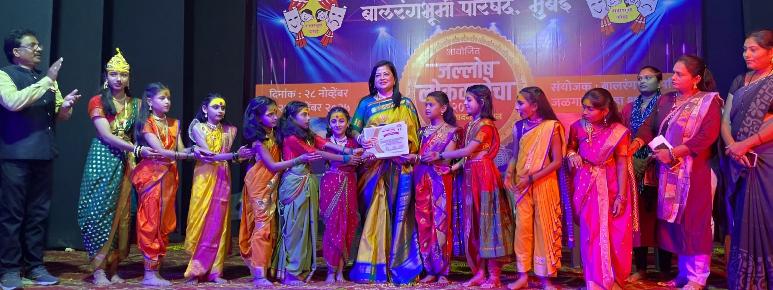 बालरंगभूमी परिषदेमार्फत बालकांमध्ये महाराष्ट्राची संस्कृती, परंपरा यासोबतच लोककलांची महती पोहचावी. या लोककलांचा त्यांनी अभ्यास करण्यासोबत त्याचा आनंदही घ्यावा या उद्देशाने ‘जल्लोष लोककलेचा’ या महोत्सवाचे बालरंगभूमी परिषद जळगाव जिल्हा शाखेतर्फे दि. २८ व २९ नोव्हेंबर रोजी आयोजन करण्यात आले आहे. त्याच्या उद्घाटनप्रसंगी रंगमंचावर बालरंगभूमी परिषद मध्यवर्ती मुंबईच्या अध्यक्ष ॲड.निलम शिर्के सामंत, प्रभारी प्रमुख कार्यवाह व जळगाव शाखेचे अध्यक्ष योगेश शुक्ल, ज्येष्ठ लोककलावंत जयश्रीताई पाटील, प्रमुख कार्यवाह विनोद ढगे, कार्याध्यक्ष संदीप घोरपडे, उपाध्यक्ष नेहा पवार, कोषाध्यक्ष सचिन महाजन यांच्यासह समूह लोकनृत्य स्पर्धेचे परीक्षक डॉ.सुचित्रा लोंढे, सचिन भिडे आदी उपस्थित होते.