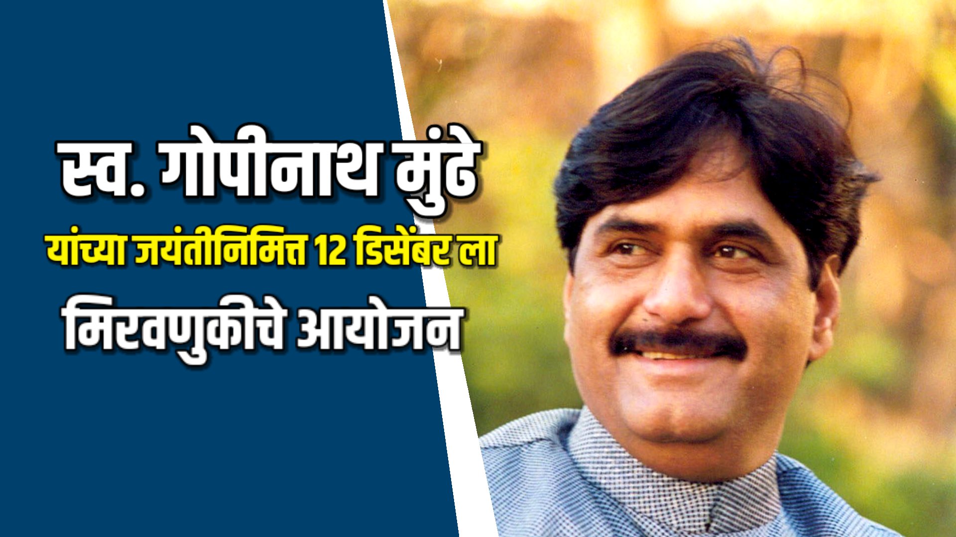 जळगाव, (प्रतिनिधी) : दिवंगत केंद्रीय ग्रामविकास मंत्री स्वर्गीय गोपीनाथराव मुंढे यांच्या जयंतीनिमित्त जळगाव शहरात १२ डिसेंबर रोजी भव्य मिरवणुकीचे (रॅली) आयोजन करण्यात आले आहे. या कार्यक्रमाच्या आयोजनासाठी समस्त लाडवंजारी समाज श्रीराम मंदिर संस्थेचे पदाधिकारी पुढाकार घेत आहेत.