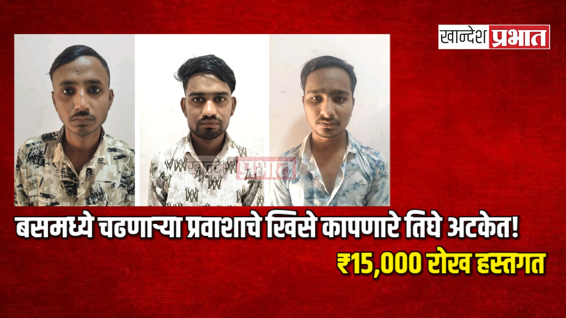 जळगाव, (प्रतिनिधी) : बसमध्ये चढणाऱ्या प्रवाशाच्या खिशातील रोकड लंपास करणाऱ्या तीन पाकीटमारांना एमआयडीसी पोलिसांनी अटक केली आहे. आरोपींकडून चोरीस गेलेली संपूर्ण ₹१५,००० रोख रक्कम हस्तगत करण्यात आली आहे.