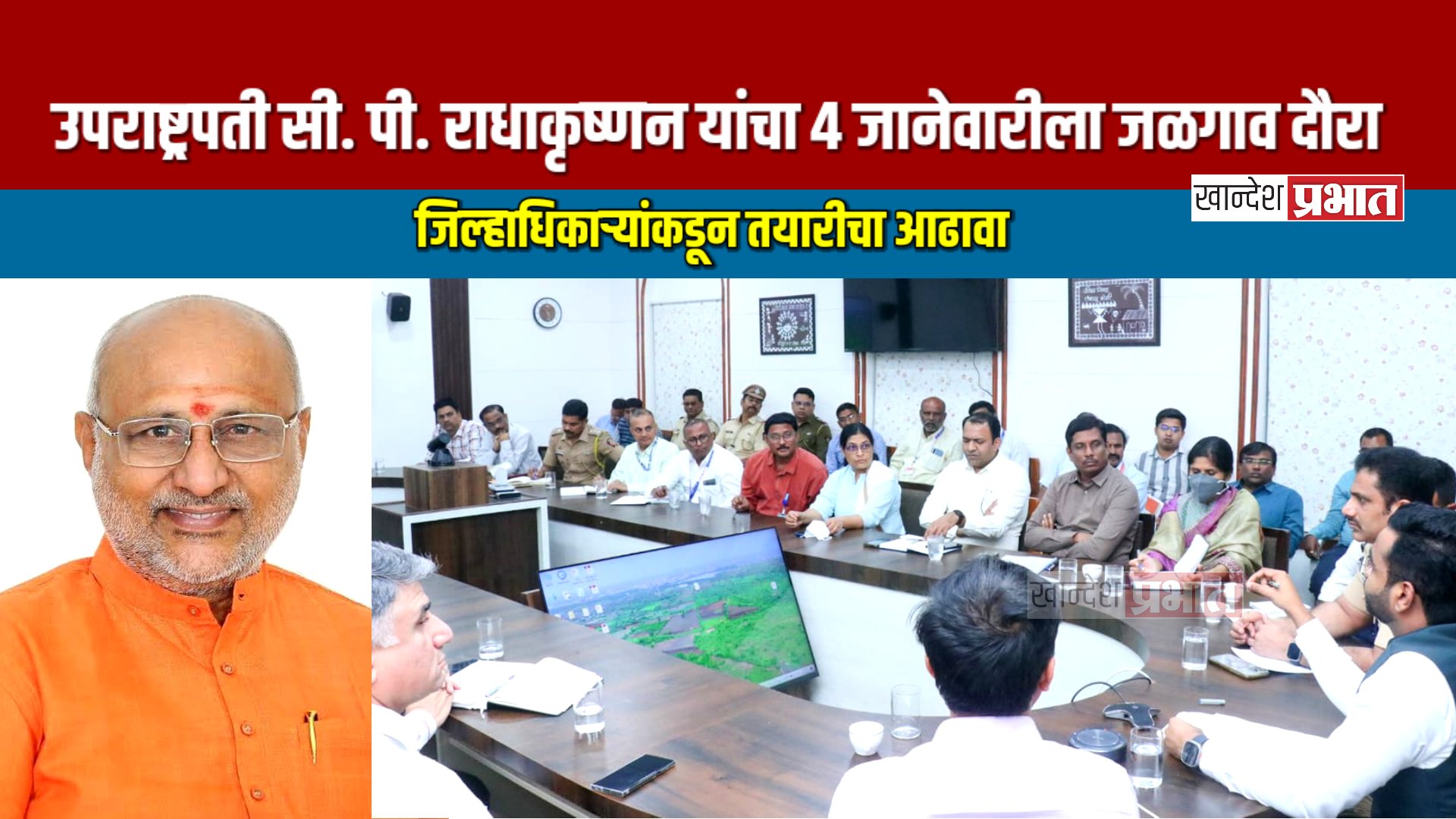 जळगाव, (प्रतिनिधी) : भारताचे उपराष्ट्रपती सी. पी. राधाकृष्णन यांचा रविवार, दि. ४ जानेवारी २०२६ रोजी जळगाव जिल्ह्याचा प्रस्तावित दौरा आयोजित करण्यात आला आहे. या दौऱ्याच्या पार्श्वभूमीवर जिल्हाधिकारी रोहन घुगे यांच्या अध्यक्षतेखाली जिल्हाधिकारी कार्यालयात सर्व संबंधित यंत्रणांची महत्त्वपूर्ण पूर्वतयारी बैठक पार पडली.