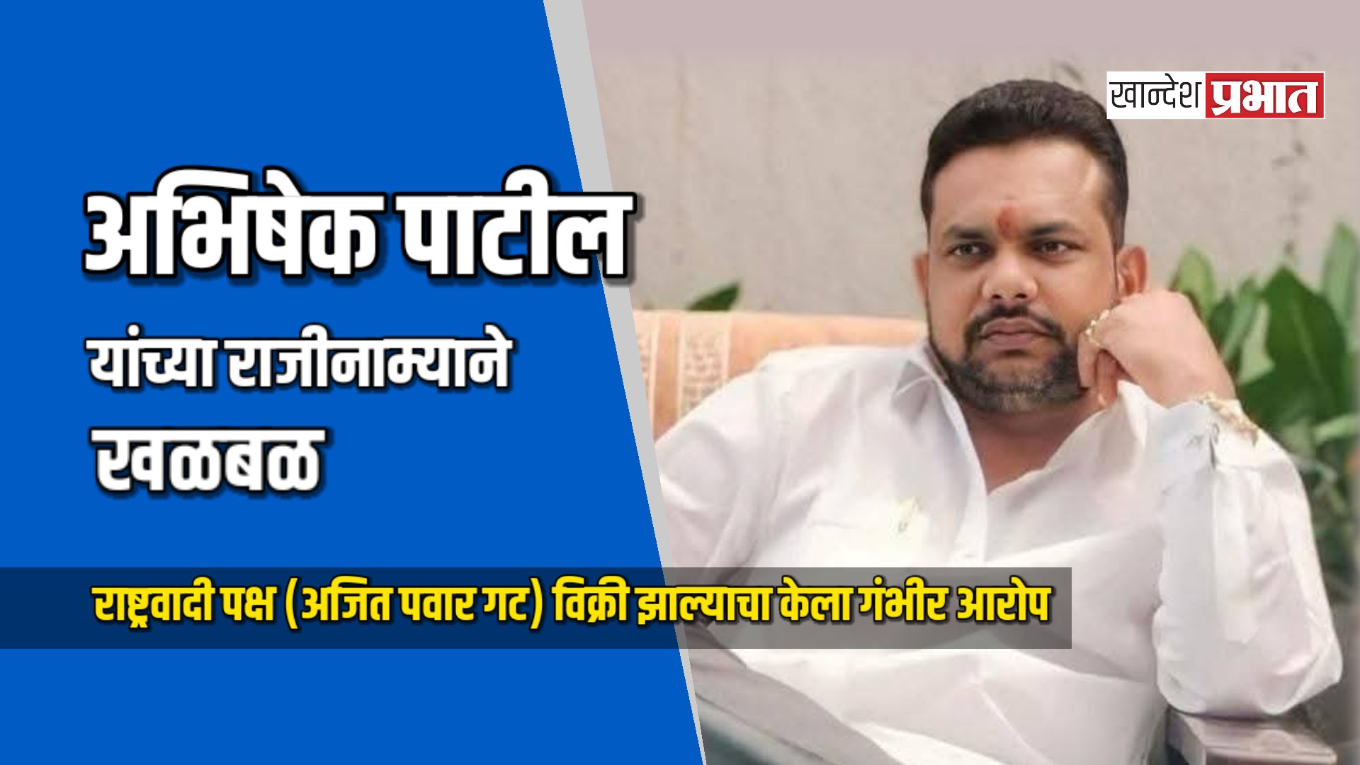 जळगाव, (प्रतिनिधी) : जळगाव महानगरपालिका निवडणुकीच्या रणधुमाळीत महायुतीमधील राष्ट्रवादी काँग्रेस (अजित पवार गट) पक्षाला मोठा धक्का बसला आहे. उमेदवारी अर्ज भरण्याच्या शेवटच्या दिवशीच जळगाव महानगराध्यक्ष अभिषेक पाटील यांनी आपल्या पदाचा तडकाफडकी राजीनामा दिला. केवळ राजीनामा देऊनच ते थांबले नाहीत, तर “पक्षाची विक्री झाली आहे” असा खळबळजनक आरोप करत त्यांनी थेट पक्ष नेतृत्वालाच आव्हान दिले आहे. यामुळे राजकीय वर्तुळात प्रचंड खळबळ उडाली आहे.