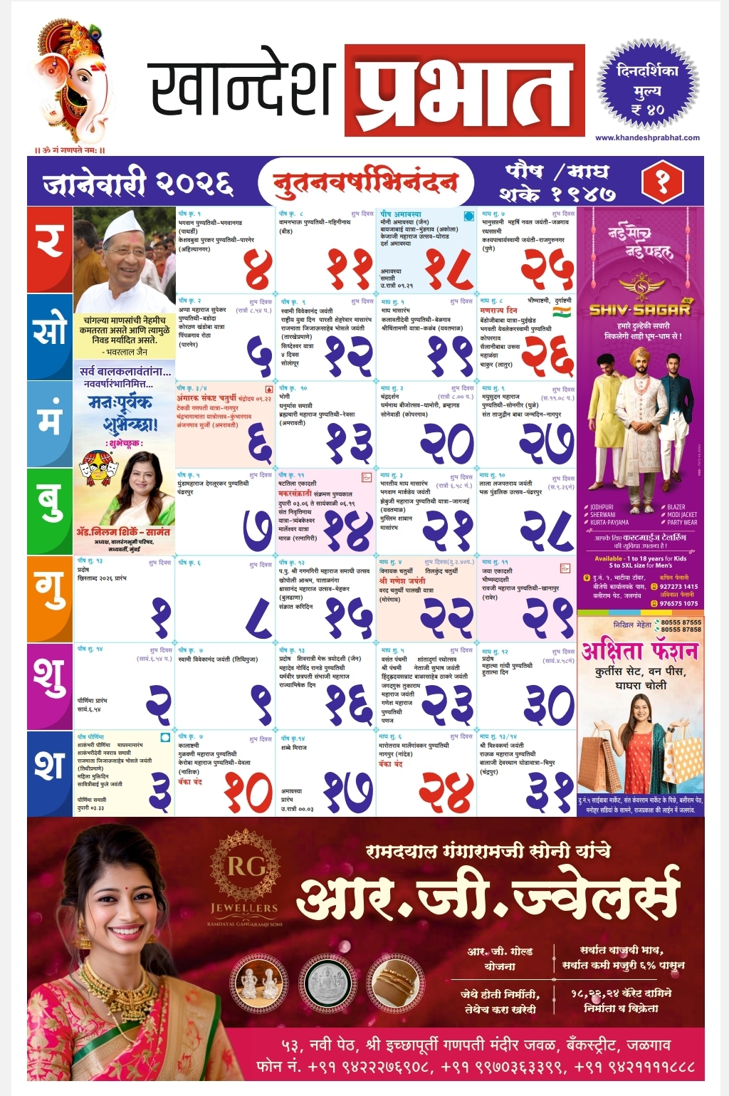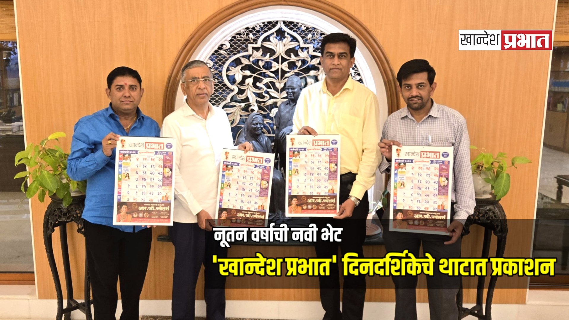 जळगाव, (प्रतिनिधी) : नूतन वर्षाच्या स्वागतासाठी सज्ज होत असताना, जळगावचे वृत्तपत्र आणि डिजिटल मिडिया ‘खान्देश प्रभात’ च्या सन २०२६ च्या दिनदर्शिकेचे (कॅलेंडर) प्रकाशन शुक्रवारी दि. ३ रोजी अत्यंत उत्साहात संपन्न झाले. जैन इरिगेशन सिस्टीम लिमिटेडचे अध्यक्ष अशोकभाऊ जैन यांच्या शुभहस्ते या दिनदर्शिकेचे अनावरण करण्यात आले.