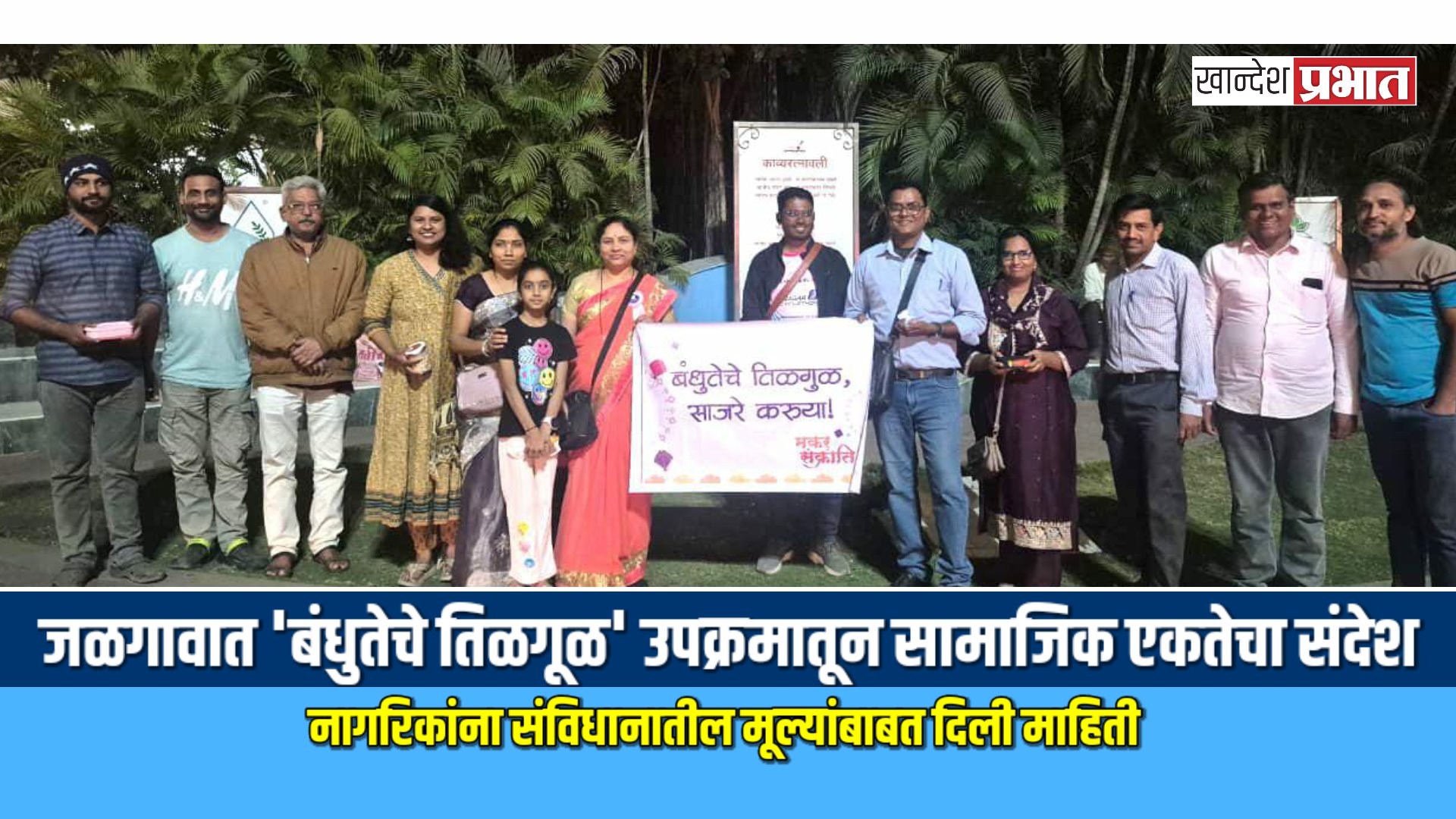 जळगाव, (प्रतिनिधी) : मकरसंक्रांतीच्या शुभमुहूर्तावर सामाजिक सलोखा आणि बंधुभाव जोपासण्यासाठी जळगाव येथील काव्य रत्नावली चौक येथे ‘बंधुतेचे तिळगूळ’ या अनोख्या कार्यक्रमाचे आयोजन करण्यात आले होते. “तिळगुळ घ्या, बंधुतेने वागा” असा संदेश देत सर्वधर्मीय नागरिकांना एकत्र आणून हा सण साजरा करण्यात आला.