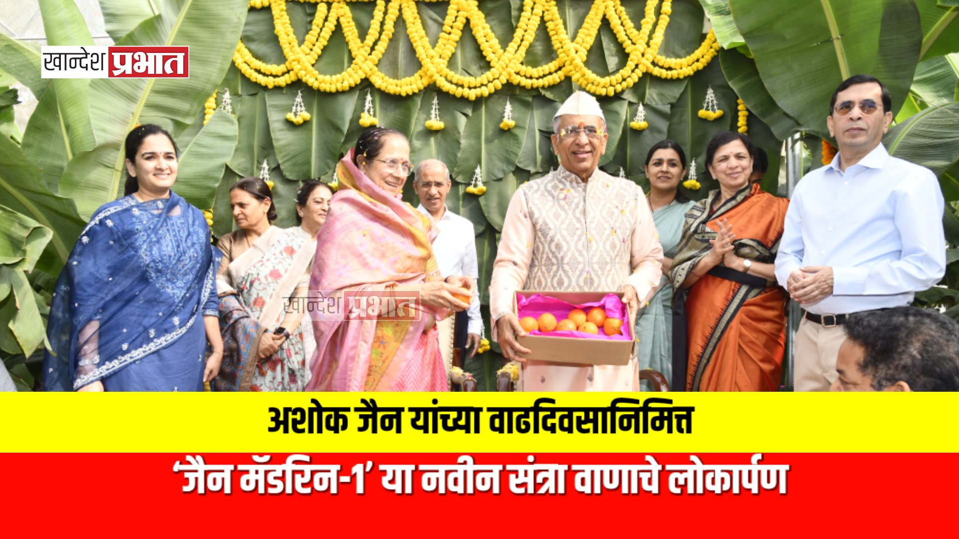 जळगाव, (प्रतिनिधी) : जैन इरिगेशनचे अध्यक्ष अशोक जैन यांच्या ६३ व्या जन्मदिनाच्या औचित्याने, जैन इरिगेशनने संशोधित व विकसित केलेल्या ‘जैन मॅडरिन-१’ या नवीन संत्रा वाणाचे लोकार्पण अशोक जैन व सौ. ज्योती जैन यांच्या हस्ते जैन हिल्स येथील केळीच्या बनात करण्यात आले. या सोहळ्याला जैन इरिगेशनचे संस्थापक श्रद्धेय भवरलालजी जैन यांचा वारसा भक्कमपणे पुढे नेणाऱ्या जैन परिवारातील सदस्यांची उपस्थिती होती. तसेच जैन इरिगेशनचे कृषितज्ज्ञ, शास्त्रज्ञ आणि सहकारी यांचीही मोठ्या संख्येने उपस्थिती होती.