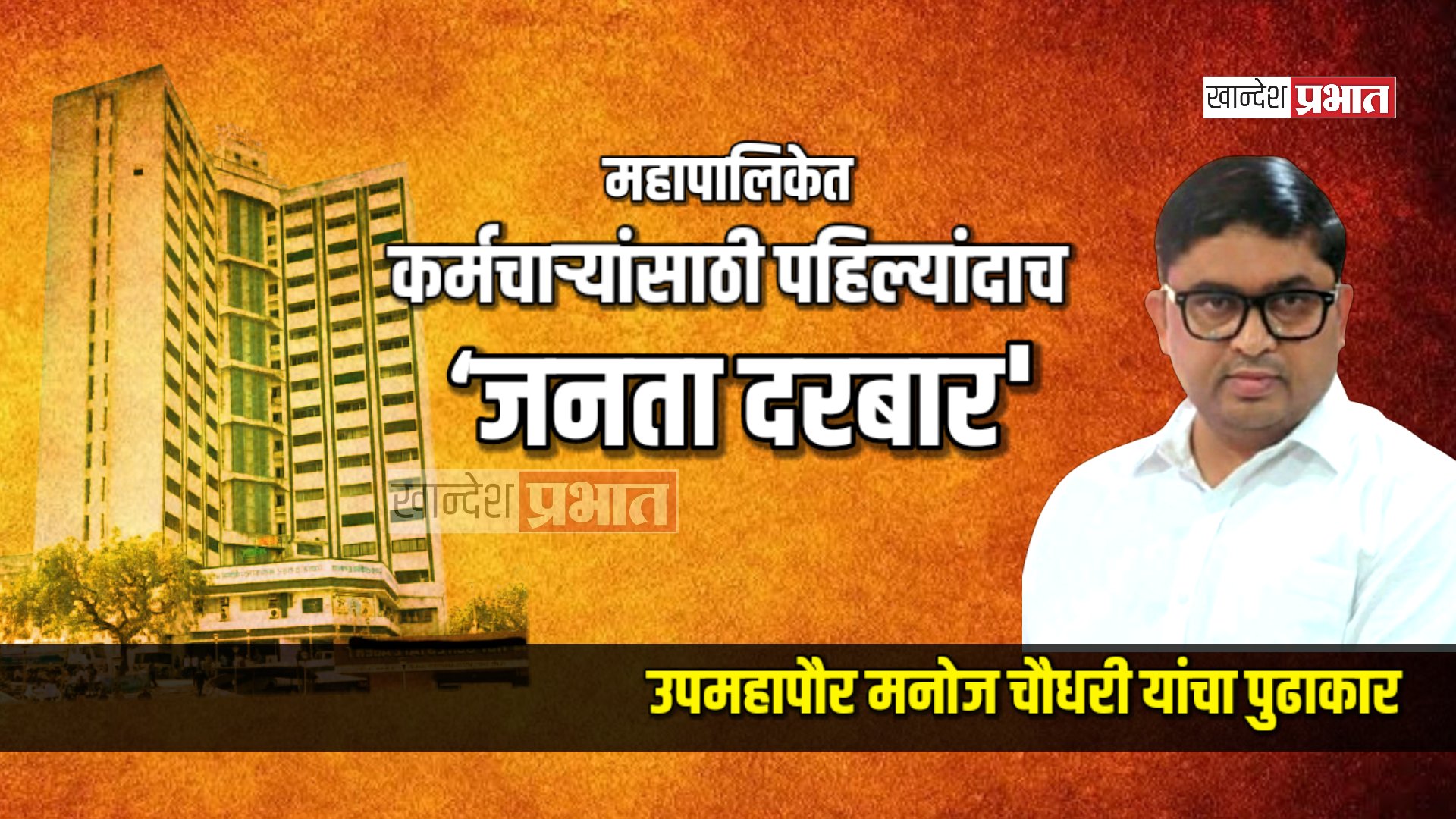 ​जळगाव, (प्रतिनिधी) : जळगाव महानगरपालिकेच्या इतिहासात पहिल्यांदाच कर्मचारी आणि प्रशासन यांच्यातील संवाद वाढवण्यासाठी ‘कर्मचारी संवाद व जनता दरबार’ आयोजित करण्यात आला आहे. उपमहापौर मनोज सुरेश चौधरी यांच्या संकल्पनेतून हा अनोखा उपक्रम उद्या, सोमवार दि. १६ मार्च रोजी सकाळी १० वाजता मनपा सभागृहात पार पडणार आहे.