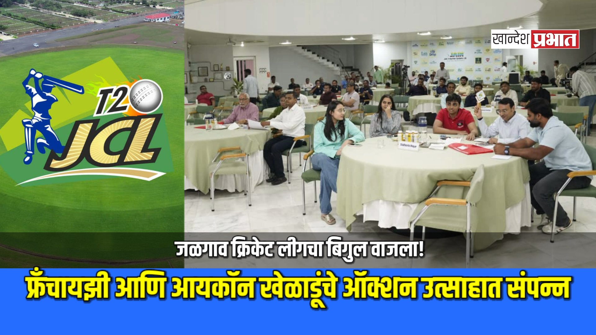 जळगाव जिल्हा क्रिकेट असोसिएशनच्या वतीने आयोजित जळगाव क्रिकेट लीग- २०२६ पर्व-२ चे ‘ऑक्शन’ जैन हिल्स येथील परिश्रम हॉलमध्ये मोठ्या उत्साहात पार पडले. या सोहळ्याला जिल्हा क्रिकेट असोसिएशनचे अध्यक्ष अतुल जैन यांनी प्रास्ताविक केले. यावेळी उपाध्यक्ष एस.टी. खैरनार, युसूफ मकरा, खजिनदार राजेंद्र लढ्ढा यांच्यासह पदाधिकारी उपस्थित होते. स्पर्धेत जळगाव किंग्स, चाळीसगाव चार्जर्स, रावेर रॉयल्स, अमळनेर जायंटस, जामनेर ब्लास्टर, पाचोरा टायटन्स हे संघ ‘ऑक्शन’ मध्ये निश्चित झाले.