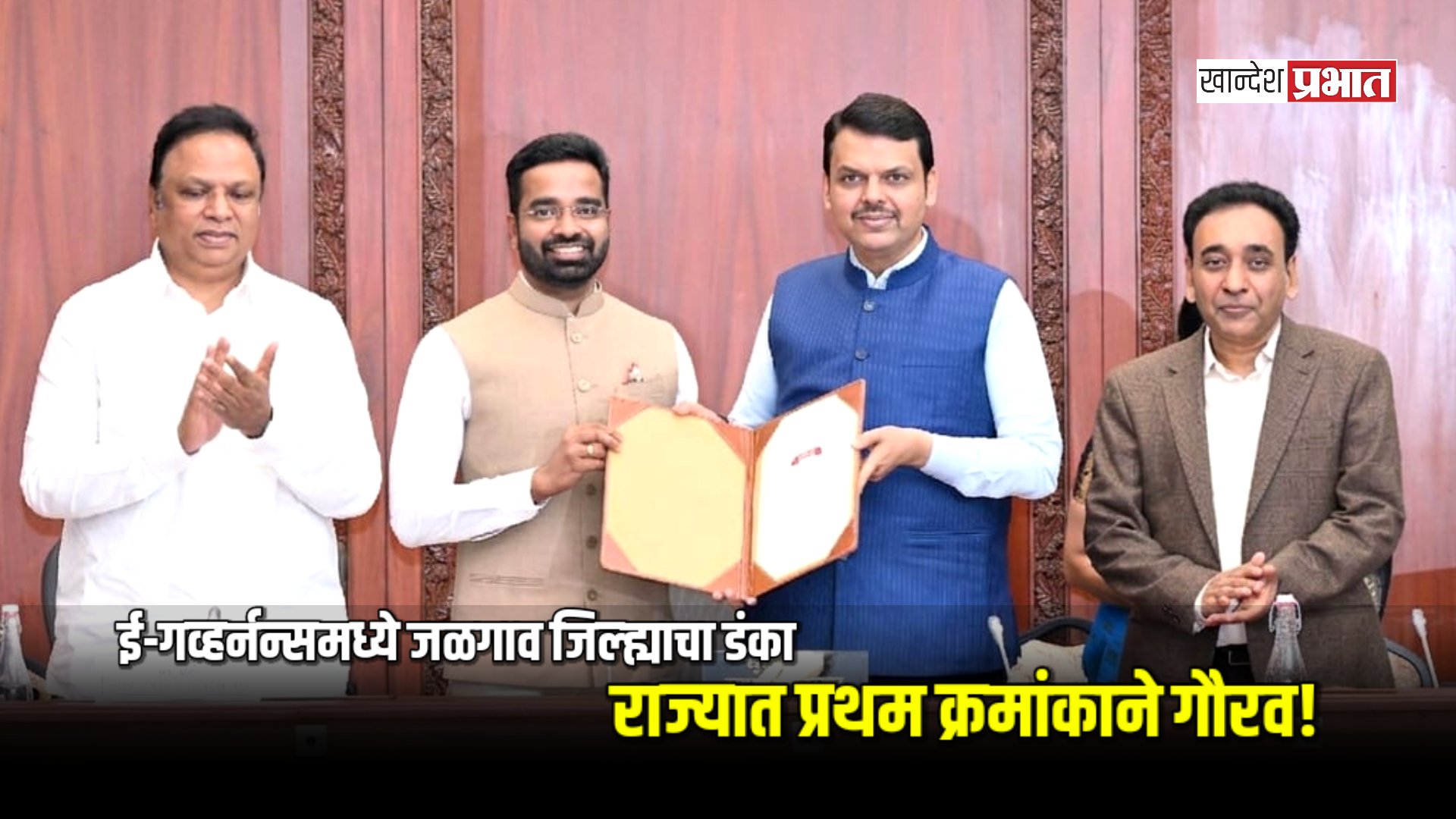 जळगाव, (प्रतिनिधी) : प्रशासकीय कामकाजात आधुनिक तंत्रज्ञानाचा वापर करून पारदर्शकता आणि गतिमानता आणण्यासाठी मुख्यमंत्री महोदयांच्या संकल्पनेतून राबविण्यात आलेल्या ‘१५० दिवसांच्या ई-गव्हर्नन्स सुधारणा कार्यक्रमात’ जळगाव जिल्हाधिकारी कार्यालयाने संपूर्ण राज्यात प्रथम क्रमांक पटकावला आहे. मुंबईतील ‘सह्याद्री’ अतिथीगृह येथे आयोजित विशेष सोहळ्यात मुख्यमंत्री यांच्याहस्ते जळगावचे जिल्हाधिकारी रोहन घुगे यांचा प्रशस्तीपत्र देऊन गौरव करण्यात आला.