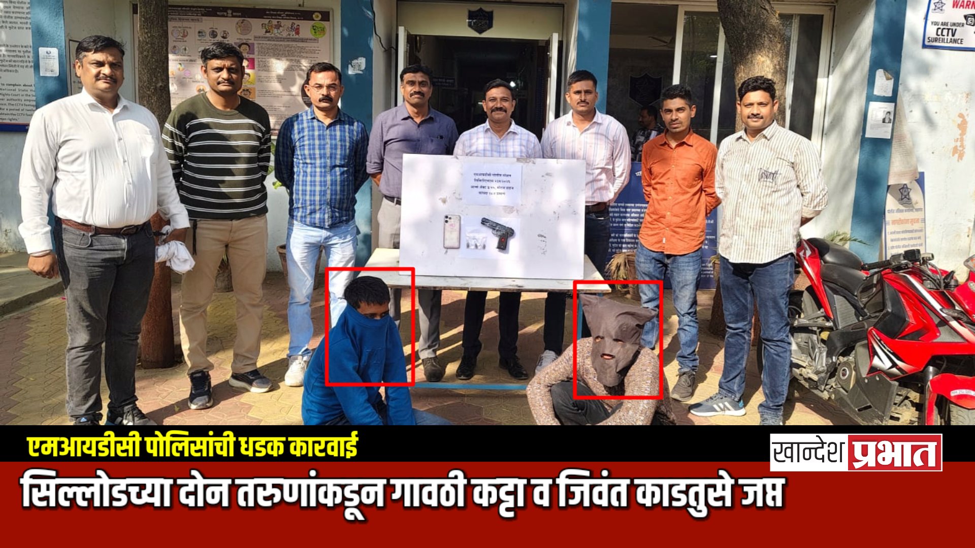 जळगाव, (प्रतिनिधी) : शहरात गुन्हेगारी कारवायांना पायबंद घालण्यासाठी पोलीस प्रशासन सतर्क असतानाच, एमआयडीसी पोलिसांनी धाडसी कारवाई करत एका गावठी कट्ट्यासह तीन जिवंत काडतुसे जप्त केली आहेत. याप्रकरणी सिल्लोड (जि. छत्रपती संभाजीनगर) येथील दोन तरुणांना अटक करण्यात आली असून, त्यांच्याकडून १ लाख ३३ हजार रुपयांचा मुद्देमाल हस्तगत करण्यात आला आहे.