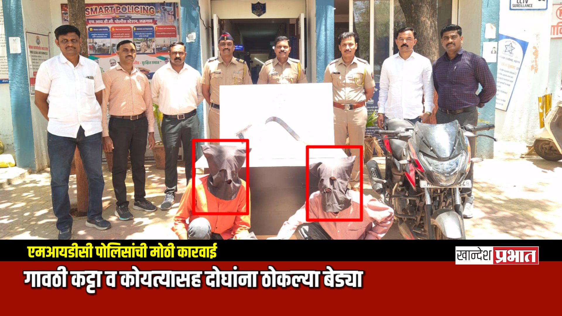 ​जळगाव शहरातील कासमवाडी परिसरात दोन तरुण घातक शस्त्रांसह फिरत असल्याची गोपनीय माहिती एम.आय.डी.सी. पोलीस स्टेशनचे पोलीस निरीक्षक बबन आव्हाड यांना मिळाली होती. या माहितीच्या आधारे गुन्हे शोध पथकाने तात्काळ कासमवाडी, नेरी नाका आणि स्मशानभूमी परिसरात सापळा रचला. नेरी नाका रोडवरील एकता चौक परिसरातील मोकळ्या मैदानात एक विनाक्रमांक मोटारसायकल पोलिसांना येताना दिसली. पोलिसांनी त्यांना थांबण्याचा इशारा केला असता, आरोपींनी वाहन न थांबवता पळून जाण्याचा प्रयत्न केला. मात्र, पोलिसांनी शिताफीने त्यांचा पाठलाग करून त्यांना ताब्यात घेतले.