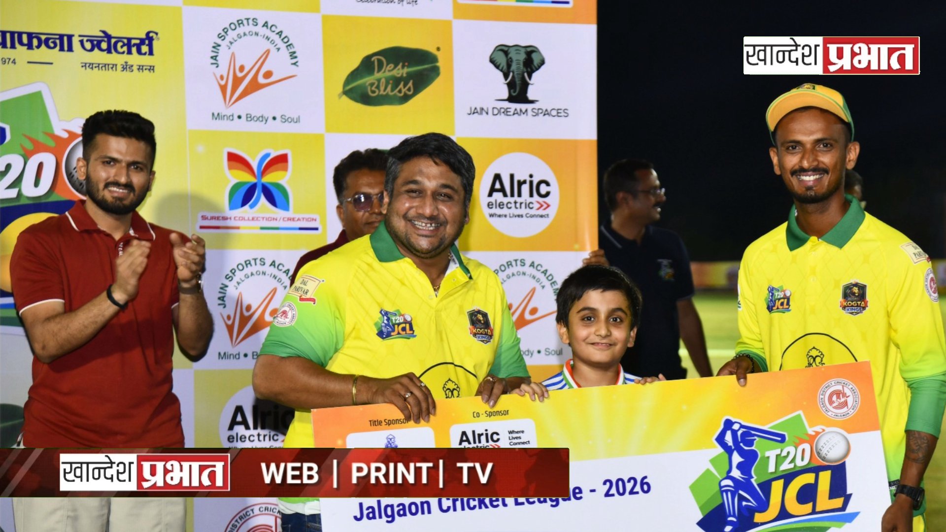 जळगाव, (प्रतिनिधी) : जळगाव जिल्हा क्रिकेट असोसिएशनच्या वतीने आयोजित जळगाव क्रिकेट लिग-२०२६, JCL T-20 क्रिकेटमध्ये चौकार षटकारांची आतीषबाजी बघायला मिळत आहे. दुसऱ्या सामन्यात जळगाव कोगटा किंगचा ओम भोसले याने धुवांधार शतक ठोकले. चाळीसगाव एसपीसीसी चॅलेर्न्सजच्या गोलंदाजींचा समाचार घेत त्याने ५८ चेंडूमध्ये ९ चौकार व ६ षटकार लगावत १०८ धावा करुन एकतर्फी सामना फिरवला.