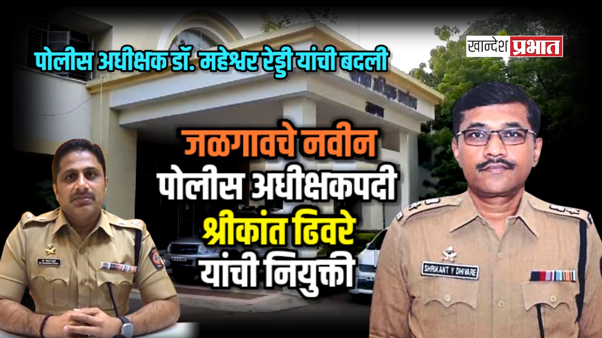 जळगाव, (प्रतिनिधी) : राज्यातील सनदी अधिकाऱ्यांच्या बदल्यांचा धडाका सुरू असतानाच, आता पोलीस दलातही मोठे फेरबदल करण्यात आले आहेत. राज्याचे मुख्यमंत्री तथा गृहमंत्री देवेंद्र फडणवीस यांनी राज्यातील ९ जिल्हा पोलीस अधीक्षकांच्या बदल्यांचे आदेश निर्गमित केले आहेत. या महत्त्वपूर्ण निर्णयांतर्गत जळगाव जिल्ह्याचे पोलीस अधीक्षक डॉ. महेश्वर रेड्डी यांची बदली करण्यात आली असून, त्यांच्या जागी धुळ्याचे पोलीस अधीक्षक श्रीकांत ढिवरे यांची जळगावचे नवे जिल्हा पोलीस अधीक्षक म्हणून नियुक्ती करण्यात आली आहे.