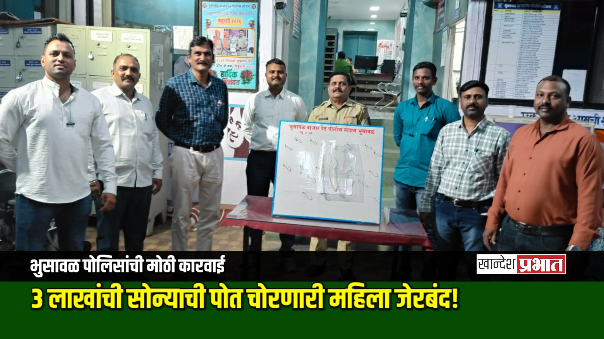 पोलिसी खाक्या दाखवताच महिलेने चोरीची कबुली दिली. तिच्याकडून पोलिसांनी चोरीला गेलेली ३ लाख २० हजार रुपयांची सोन्याची पोत हस्तगत केली आहे. या यशस्वी कारवाईत डी.बी. पथकाचे विजय नेरकर, कांतीलाल केदारे, सचिन चौधरी, महेंद्र पाटील, अक्षय कोतकर, योगेश माळी, चंद्रकांत रायपूरकर, जावेद शहा, भूषण चौधरी, अमर अठाडे, दिलीप कोल्हे, जिवन कापडे, हर्षल महाजन आणि शिल्पा राठोड यांचा समावेश होता. पुढील तपास पोलीस नाईक कांतीलाल केदारे करत आहेत.